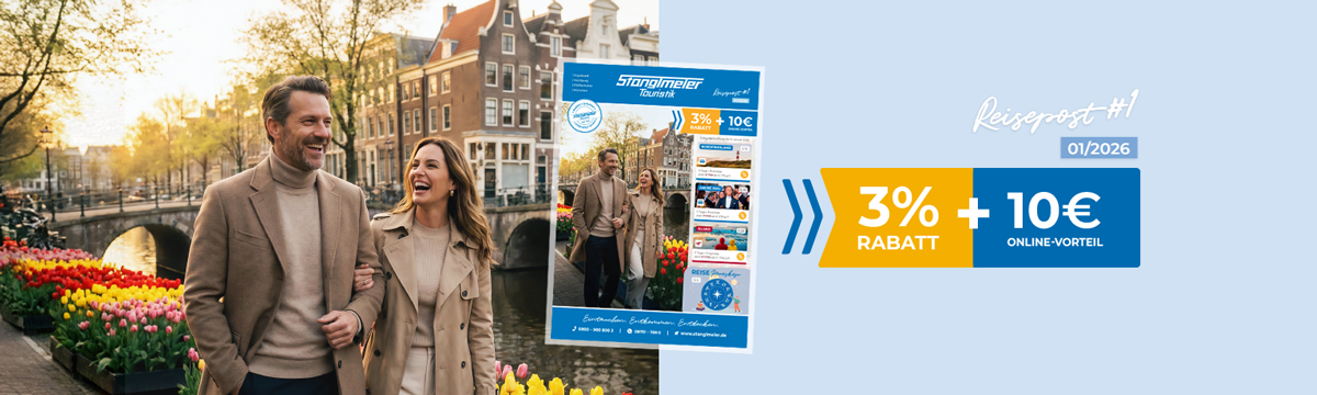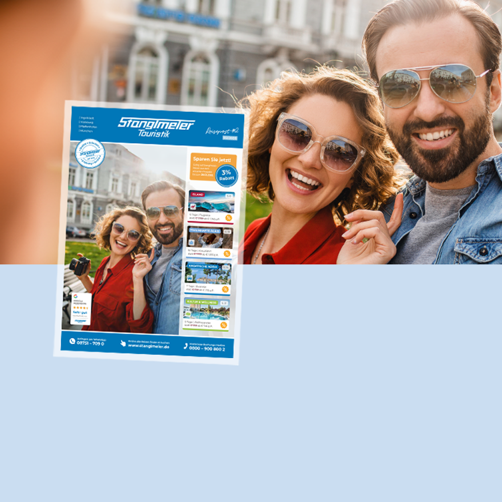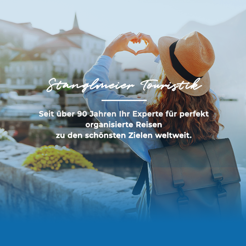Vertrauen Sie Stanglmeier Touristik wenn es um die schönste Zeit in Ihrem Jahr geht! Bei uns finden Sie tolle Gruppenreisen in die ganze Welt, sorgfältig für Sie zusammengestellt und geplant, mit einem top Preis-Leistungsverhältnis und hoher Qualität. Sie sind bei uns genau richtig, wenn Sie Wert auf Hotels mit geprüfter Qualität, beste Reiseorganisation, deutschsprachige Reiseleitungen mit ausgezeichnetem Wissen und Sicherheit bei Beförderung legen. Unser Service beginnt bereits vor Ihrer Buchung - mit der besten Beratung. Vor Ort in einem unserer Reisebüros, telefonisch oder über unseren Live-Chat auf der Website. Unsere ausgebildeten Mitarbeiter finden mit Ihnen zusammen die perfekte Reise, die Ihren Vorstellungen entspricht. Gerne besprechen und planen wir mit Ihnen auch individuelle Reisewünsche.