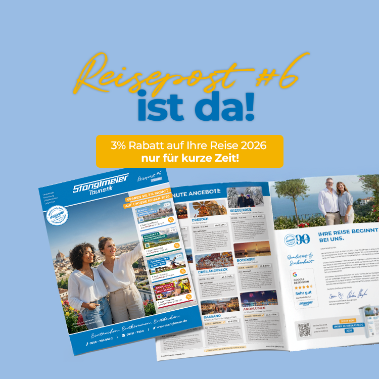 Vertrauen Sie Stanglmeier Touristik wenn es um die schönste Zeit in Ihrem Jahr geht! Bei uns finden Sie tolle Gruppenreisen in die ganze Welt, sorgfältig für Sie zusammengestellt und geplant, mit einem top Preis-Leistungsverhältnis und hoher Qualität. Sie sind bei uns genau richtig, wenn Sie Wert auf Hotels mit geprüfter Qualität, beste Reiseorganisation, deutschsprachige Reiseleitungen mit ausgezeichnetem Wissen und Sicherheit bei Beförderung legen. Unser Service beginnt bereits vor Ihrer Buchung - mit der besten Beratung. Vor Ort in einem unserer Reisebüros, telefonisch oder über unseren Live-Chat auf der Website. Unsere ausgebildeten Mitarbeiter finden mit Ihnen zusammen die perfekte Reise, die Ihren Vorstellungen entspricht. Gerne besprechen und planen wir mit Ihnen auch individuelle Reisewünsche.