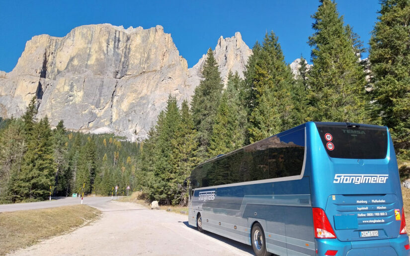 Weiter ging es nach Cortina d’Ampezzo, wo Zeit für einen kleinen Bummel blieb, bevor wir über spektakuläre Passstraßen wie den Falzarego- und Valparolapass fuhren. Immer wieder hieß es: Kamera raus, staunen, genießen. Diese Landschaft wirkt einfach – egal wie oft man sie sieht.