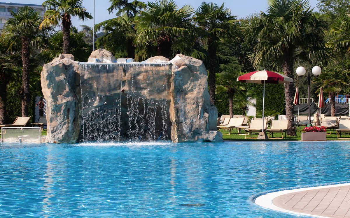 Das Hotel verfügt über zwei miteinander verbundene Schwimmbäder im Innen- und Außenbereich, die mit Massageliegen, Wasserfällen und Wasserstrahlmassagewannen ausgestattet sind und eine angenehme Wassertemperatur von 35 °C bieten. Für eine belebende Erfrischung sorgt die Kneippbahn mit kleinen Wasserstrahlmassagewannen, die zwischen warmem und kaltem Wasser wechseln. Die Thermalgrotte lädt bei 42 °C zur Tiefenentspannung ein, während jeden Nachmittag von Montag bis Samstag Aquagym-Kurse angeboten werden. Das vielfältige Thermalangebot umfasst Thermalfango und Thermalbäder sowie ein Römisch-Irisches Bad, das mit einem abwechslungsreichen Ablauf aufwartet: Begonnen wird im Tepidarium bei 40 °C, gefolgt von der Römischen Sauna mit 50 °C, dem Dampfbad (42 °C), einem Körperpeeling, einem weiteren Dampfbad, einer erfrischenden Dusche, der Türkischen Sauna bei 42 °C, einer finnischen Dusche und schließlich einem Thermalbad mit Hydromassage. Zum Abkühlen steht Eis bereit, und zum Entspannen laden Thermalwasser-Hydromassageliegen sowie Liegen mit warmen Tüchern ein.