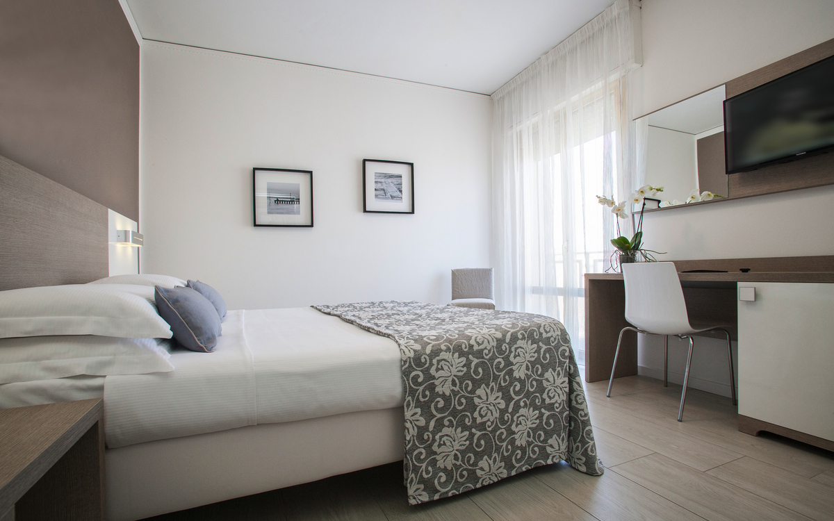 Das kürzlich renovierte Hotel erstreckt sich über vier Etagen und bietet eine 24-Stunden-Rezeption, einen Speisesaal mit Meerblick, eine Terrasse, eine Poolbar, einen Lift sowie kostenpflichtige Parkplätze. WLAN ist im gesamten Hotel verfügbar. Ein Aufenthaltsraum mit SAT-TV und kleiner Bar lädt zum Verweilen ein. Die 68 renovierten Zimmer verfügen über Dusche/WC, Pflegeprodukte, Balkon mit seitlichem Meerblick, Smart-TV mit Sky, WLAN, Safe und Telefon. Die Klimaanlage ist von Juni bis September im Preis inbegriffen. Barrierefreie Zimmer sind vorhanden. Room Service ist gegen Aufpreis verfügbar.