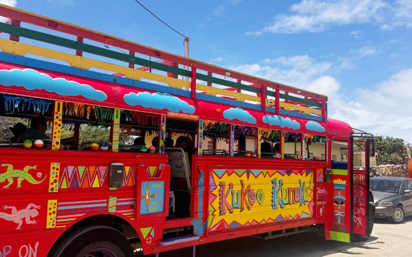 Mit feinem, hellem Sand, türkisblauem Wasser und locker verteilten Palmen erfüllt Aruba alle Erwartungen an die klassische Karibik. Gleichzeitig lässt sich die Insel auf entspannte Weise entdecken – etwa mit den typisch bunten Open-Air-Bussen, die ein authentisches Lebensgefühl vermitteln.