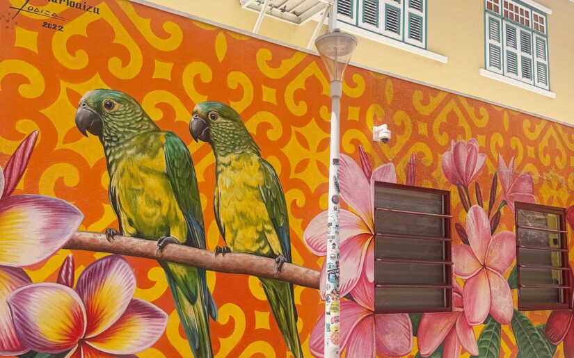 Geprägt von intensiven Farben und kreativer Ausdruckskraft zeigt sich Curaçao von seiner lebendigen Seite. Neben den bekannten Fassaden in Willemstad fallen besonders die großflächigen Wandgemälde ins Auge – detailreiche Motive, wie kunstvoll gestaltete Papageien, verleihen der Insel eine moderne, kulturelle Dynamik. Beim gemeinsamen Erkunden der Straßen eröffnen sich immer wieder neue, spannende Perspektiven.