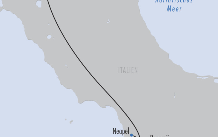 Durch die bayerische Voralpenlandschaft und über die Alpen reisen auf einer panoramareichen Fahrt in die Region Chianciano Terme in der wunderschönen südlichen Toskana, eine traditionsreiche Kurregion umgeben von sanften Hügeln, Zypressen und Weinbergen. Zwischenübernachtung. Nach dem Frühstück am 2. Tag setzen Sie Ihre Reise weiter in Richtung Süden fort. Sie erreichen die Region Kampanien am berühmten Golf von Neapel. Ihr Ziel ist Castellammare di Stabia, ein lebendiger Ort mit eleganter Uferpromenade, direkt zwischen Neapel und dem legendären Sorrent gelegen. Ihr Hotel liegt einen kurzen Spaziergang von der Uferpromenade und dem Bahnhof der Ferrovia Circumvesuviana entfernt, die Sie z. B. nach Neapel oder in das legendäre Sorrento bringt. Mit Blick auf den Vesuv und das Tyrrhenische Meer beginnt hier Ihr Aufenthalt in einer der faszinierendsten Regionen Italiens!