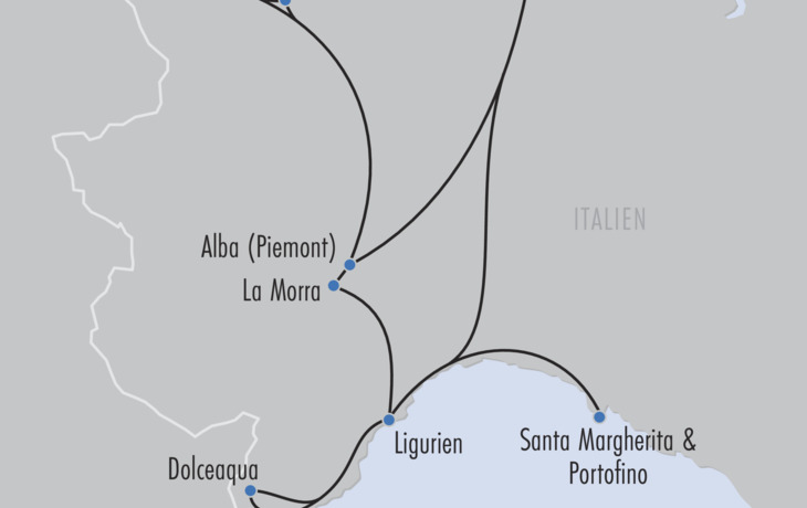 Es gibt Reisen, die sind eine Entdeckung für alle Sinne. Zwischen mächtigen Alpenpässen, sanften Hügellandschaften und dem azurblauen Mittelmeer entfaltet Norditalien eine unvergleichliche Vielfalt. In den Tälern des Aostatals erzählen römische Ruinen und mittelalterliche Festungen von längst vergangenen Zeiten, während die Weinberge des Piemont ein Paradies für Genießer sind. Und schließlich erwartet Sie die ligurische Riviera mit ihrer unvergleichlichen Mischung aus mondänen Küstenorten, bunten Fischerdörfern und mediterraner Leichtigkeit. Erleben Sie eine Reise voller Kontraste: mal eindrucksvoll und geschichtsträchtig, mal genussvoll und entspannt, mal von italienischer Lebensfreude durchdrungen. Zwischen alpiner Klarheit und maritimem Glanz lernen Sie Regionen kennen, die Sie mit ihrer Ursprünglichkeit ebenso verzaubern wie mit ihrer Eleganz.