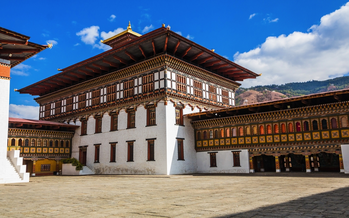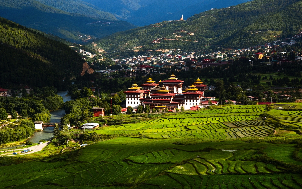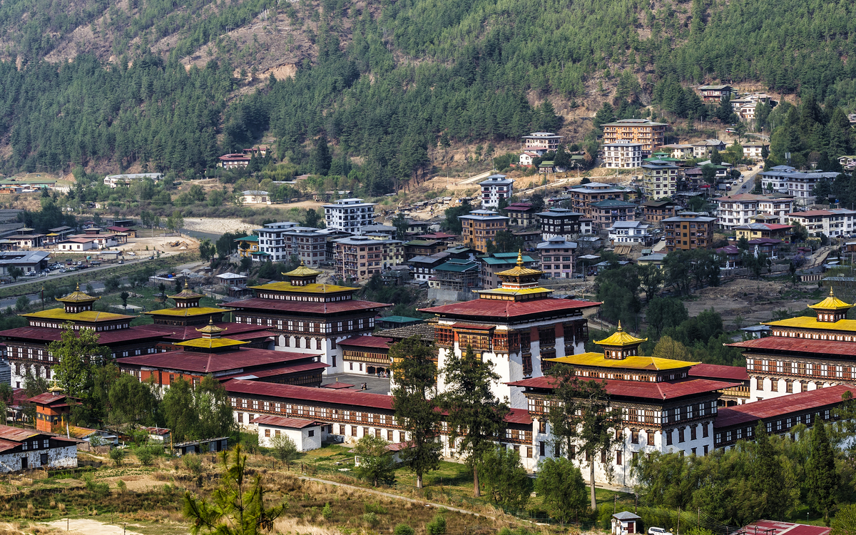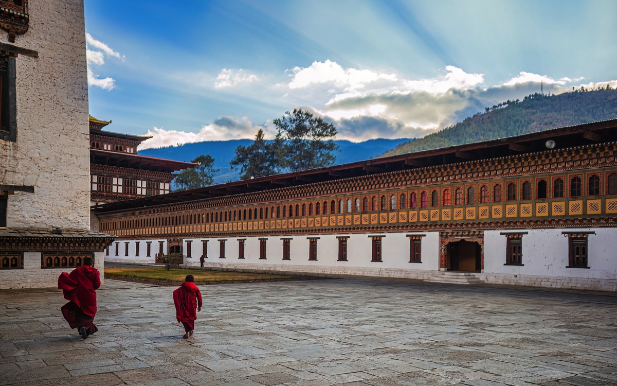 Frühstücksbox. Sie machen sich wieder auf den Weg zum Flughafen Delhi, wo Sie mit dem Frühflug der bhutanischen Nationalfluggesellschaft Druk Air nach Paro fliegen. Schon der Anflug auf den Flughafen von Paro ist ein Erlebnis, das lange im Gedächtnis bleibt – atemberaubend, abenteuerlich und nur wenigen Piloten weltweit vorbehalten. Zwischen den mächtigen Gipfeln des Himalayas beginnt das Flugzeug seinen eleganten Sinkflug, während aus dem Fenster schneebedeckte Achttausender und tiefgrüne Täler vorbeiziehen. Mit jedem Kilometer nähern Sie sich dem Herzen Bhutans, einem Land, das bis heute tief in seiner Kultur verwurzelt ist. Der Landeanflug erfolgt in gekonnter Kurvenlage durch ein enges Flusstal – spektakulär und gleichzeitig ein Vorgeschmack auf die Einzigartigkeit dieses Königreichs. Kaum gelandet, empfängt Sie Paro mit klarer Bergluft, farbenfrohen Gebetsfahnen und der stillen Schönheit der Himalaya-Landschaft. Willkommen in Bhutan – dem Land des Donnerdrachens! Begrüßung am Flughafen und Transfer in die bhutanische Hauptstadt Thimphu. Am Abend besuchen Sie das Herz Bhutans. Majestätisch thront der Trashichho Dzong am Ufer des Wang Chu-Flusses in Thimphu – ein Ort von spiritueller Kraft, politischer Bedeutung und architektonischer Schönheit. Der „Fort der glorreichen Religion“ ist nicht nur Sitz der königlichen Regierung und des Oberhauptes der buddhistischen Geistlichkeit, sondern auch ein Symbol für Bhutans harmonisches Miteinander von Tradition und Moderne. Schon beim Betreten spürt man die besondere Atmosphäre: goldglänzende Dächer, kunstvoll bemalte Holzfassaden und ein weitläufiger Innenhof, in dem Mönche in leuchtend roten Roben zwischen den Zeremonien verweilen. Übernachtung in Thimphu (1/2).