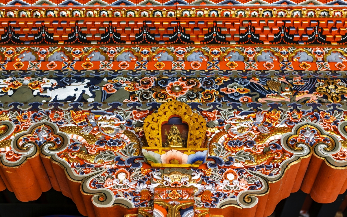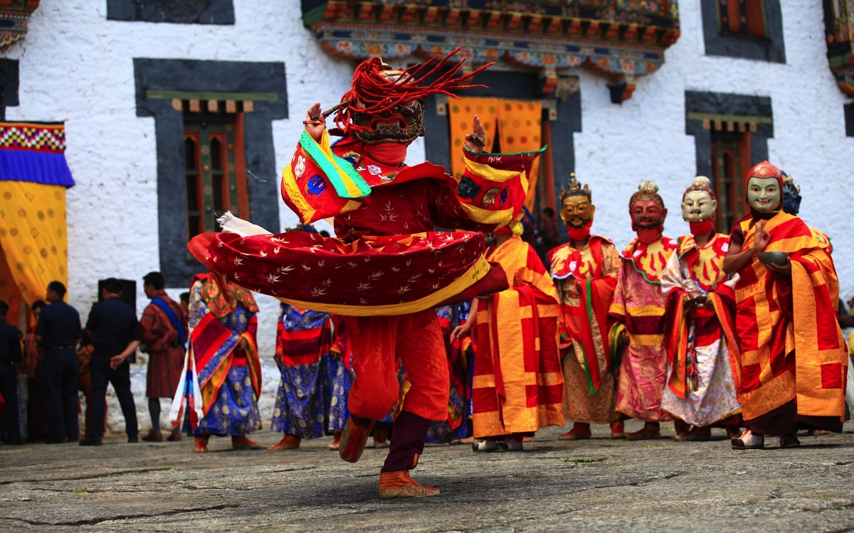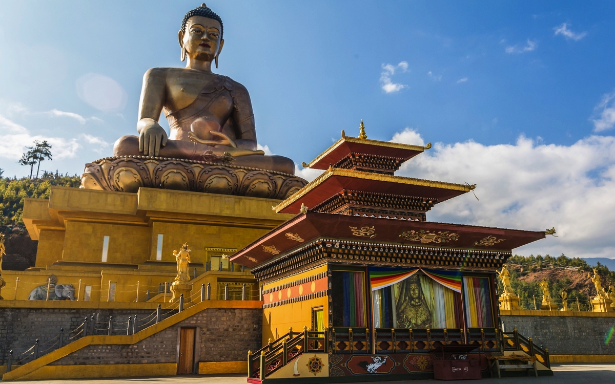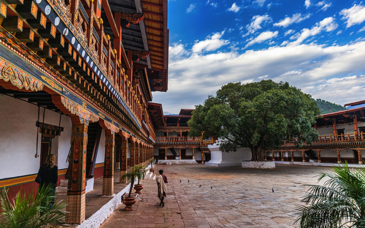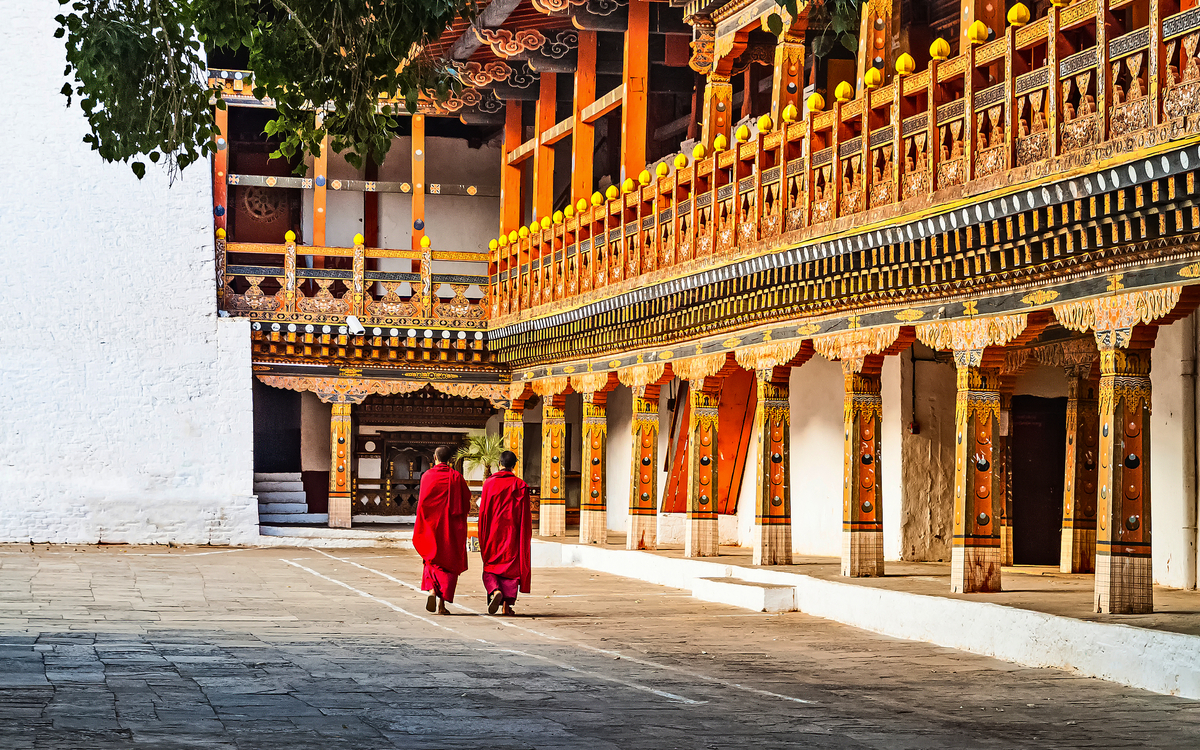 Frühstücksbox. Sie machen sich wieder auf den Weg zum Flughafen Delhi, wo Sie mit dem Frühflug der bhutanischen Nationalfluggesellschaft Druk Air nach Paro fliegen. Schon der Anflug auf den Flughafen von Paro ist ein Erlebnis, das lange im Gedächtnis bleibt – atemberaubend, abenteuerlich und nur wenigen Piloten weltweit vorbehalten. Zwischen den mächtigen Gipfeln des Himalayas beginnt das Flugzeug seinen eleganten Sinkflug, während aus dem Fenster schneebedeckte Achttausender und tiefgrüne Täler vorbeiziehen. Mit jedem Kilometer nähern Sie sich dem Herzen Bhutans, einem Land, das bis heute tief in seiner Kultur verwurzelt ist. Der Landeanflug erfolgt in gekonnter Kurvenlage durch ein enges Flusstal – spektakulär und gleichzeitig ein Vorgeschmack auf die Einzigartigkeit dieses Königreichs. Kaum gelandet, empfängt Sie Paro mit klarer Bergluft, farbenfrohen Gebetsfahnen und der stillen Schönheit der Himalaya-Landschaft. Willkommen in Bhutan – dem Land des Donnerdrachens! Begrüßung am Flughafen und Transfer in die bhutanische Hauptstadt Thimphu. Am Abend besuchen Sie das Herz Bhutans. Majestätisch thront der Trashichho Dzong am Ufer des Wang Chu-Flusses in Thimphu – ein Ort von spiritueller Kraft, politischer Bedeutung und architektonischer Schönheit. Der „Fort der glorreichen Religion“ ist nicht nur Sitz der königlichen Regierung und des Oberhauptes der buddhistischen Geistlichkeit, sondern auch ein Symbol für Bhutans harmonisches Miteinander von Tradition und Moderne. Schon beim Betreten spürt man die besondere Atmosphäre: goldglänzende Dächer, kunstvoll bemalte Holzfassaden und ein weitläufiger Innenhof, in dem Mönche in leuchtend roten Roben zwischen den Zeremonien verweilen. Übernachtung in Thimphu (1/2).