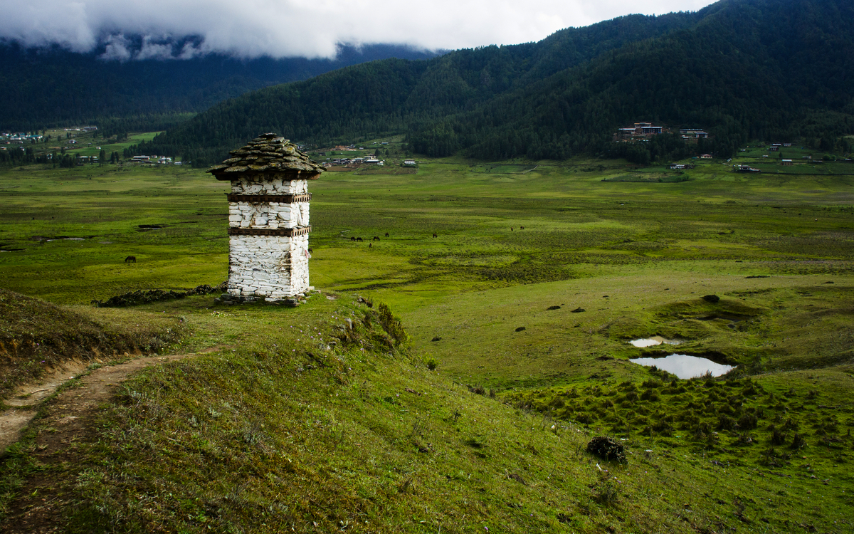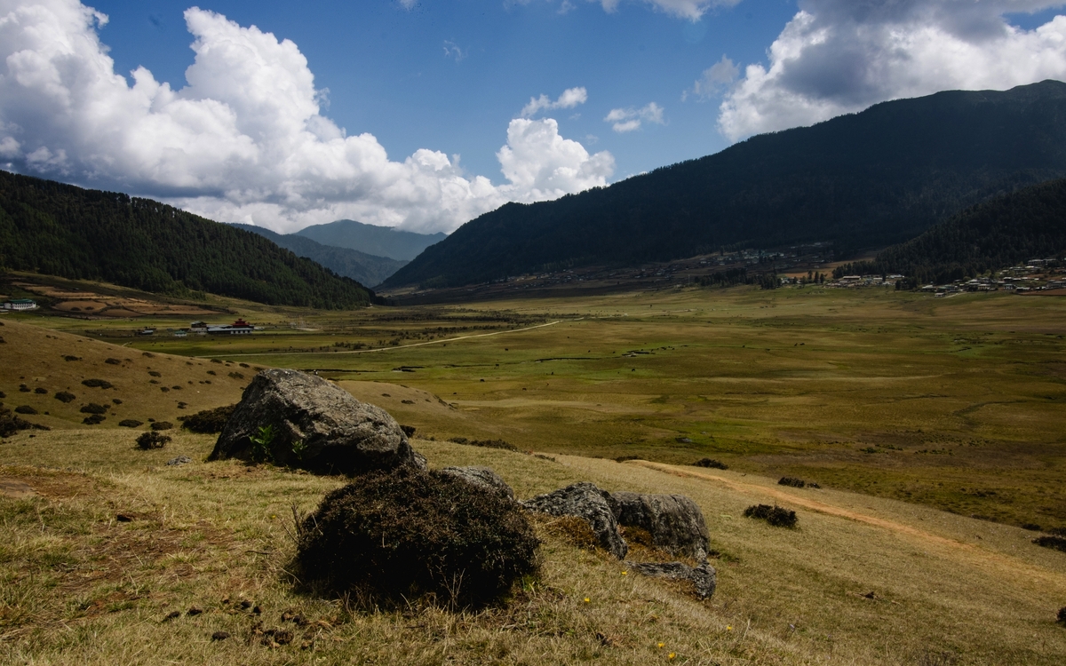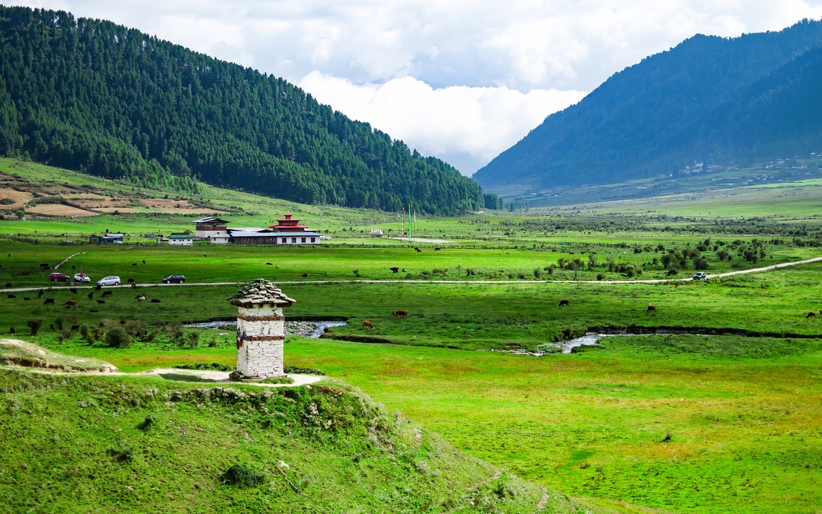 Sie erwartet eine kleine Wanderung auf einem der schönsten Wanderwege Bhutans, der Gangtey Nature Trail. Auf rund 1,5 Stunden führt der Pfad vom Gangtey-Kloster sanft hinab durch Pinienwälder, vorbei an weiten Wiesen, kleinen Bauernhöfen und traditionellen Gebetsmauern bis in den Talboden des Phobjikha-Tals. Stets begleitet vom Ruf der Vögel und dem leichten Rauschen des Windes, bietet sich unterwegs immer wieder der Blick auf die offene Weite des Hochtals. Das Phobjikha-Tal ist das Winterquartier der seltenen Schwarzhalskraniche, die jedes Jahr im Spätherbst aus Tibet einfliegen und als heilig gelten. Sie besuchen das Crane Information Centre, das auf anschauliche Weise mehr über das Leben, den Flug und die symbolische Bedeutung der Kraniche im bhutanischen Kulturverständnis erzählt. Übernachtung in Gangtey (2/2).