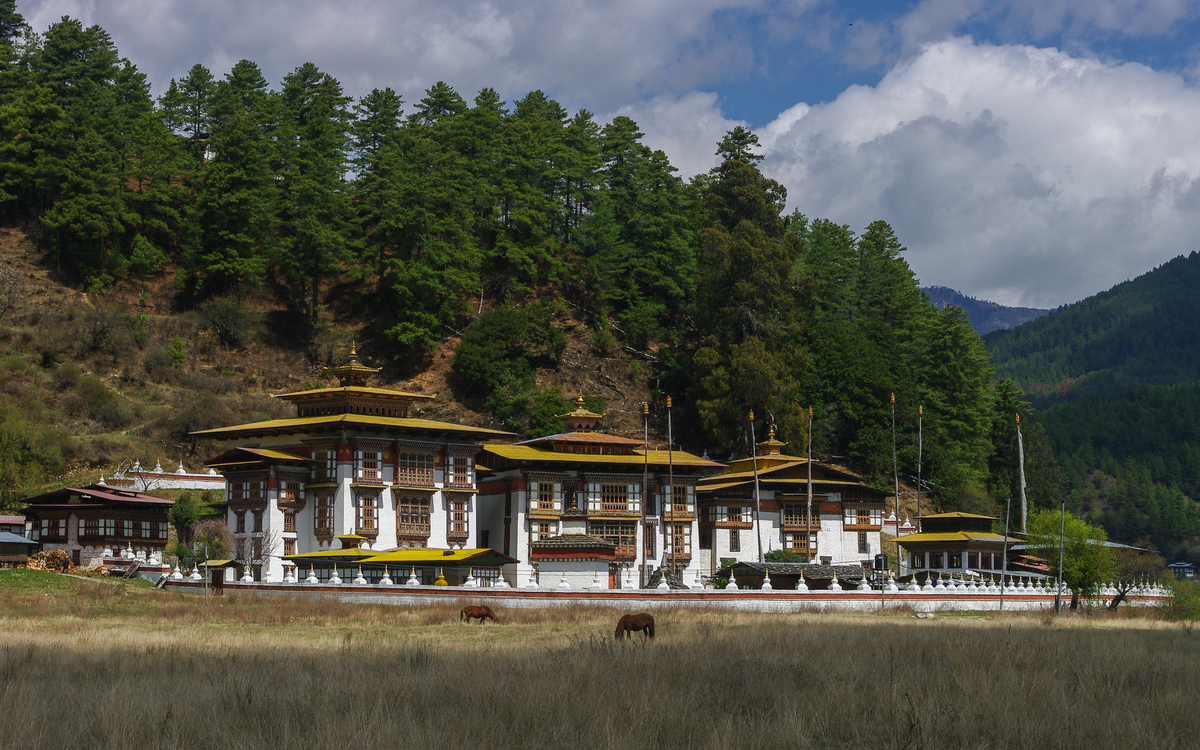 Nach einem frühen Frühstück erwartet Sie ein Höhepunkt, im wahrsten Sinne des Wortes. Auf über 3.000 m auf dem Dochula-Pass eröffnet sich Ihnen ein atemberaubender Blick auf die schneebedeckten Himalaya-Gipfel. Besonders beeindruckend sind die 108 Chorten, die in perfekter Harmonie auf der Passhöhe thronen. Bei gutem Wetter und klarer Sicht, können Sie hier gleich sieben Siebentausender bestaunen! Danach empfängt Sie Wangduephodrang auf über 1.700 m, malerisch auf einem Hügelrücken gelegen, mit weiten Blicken über grüne Täler, Reisfelder und sich schlängelnde Flüsse. Mittagessen. Sie folgen nun dem Fluss Dang Chhu und durchqueren Bambus- und Eichenwälder und überqueren den Pele La Pass auf 3.400 m. Umgeben von Rhododendron- und Bambuswäldern, öffnet sich bei klarer Sicht ein spektakuläres Panorama bis zu den schneebedeckten Himalaya-Gipfeln, darunter der heilige Jomolhari. Sie erreichen das Phobjikha-Tal, das stille Tal der Kraniche, und das Dorf Gangtey. Zum Abschluss besuchen Sie das Gangtey Kloster, eines der bedeutendsten Klöster im westlichen Bhutan und geistiges Zentrum der Nyingma-Tradition. Schon von Weitem sichtbar, wirkt es wie ein stiller Wächter über dem Tal, umgeben von weiten Wiesen und dunklen Pinienwäldern. Übernachtung in Gangtey (1/2).