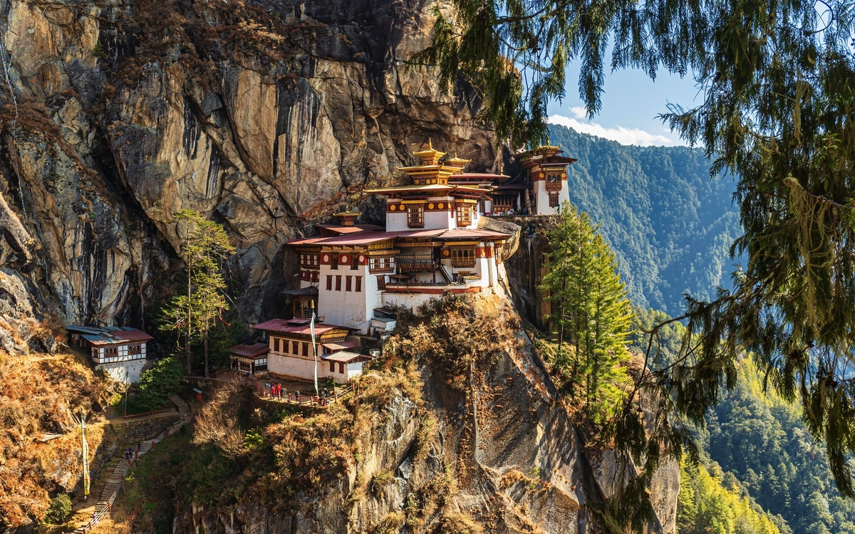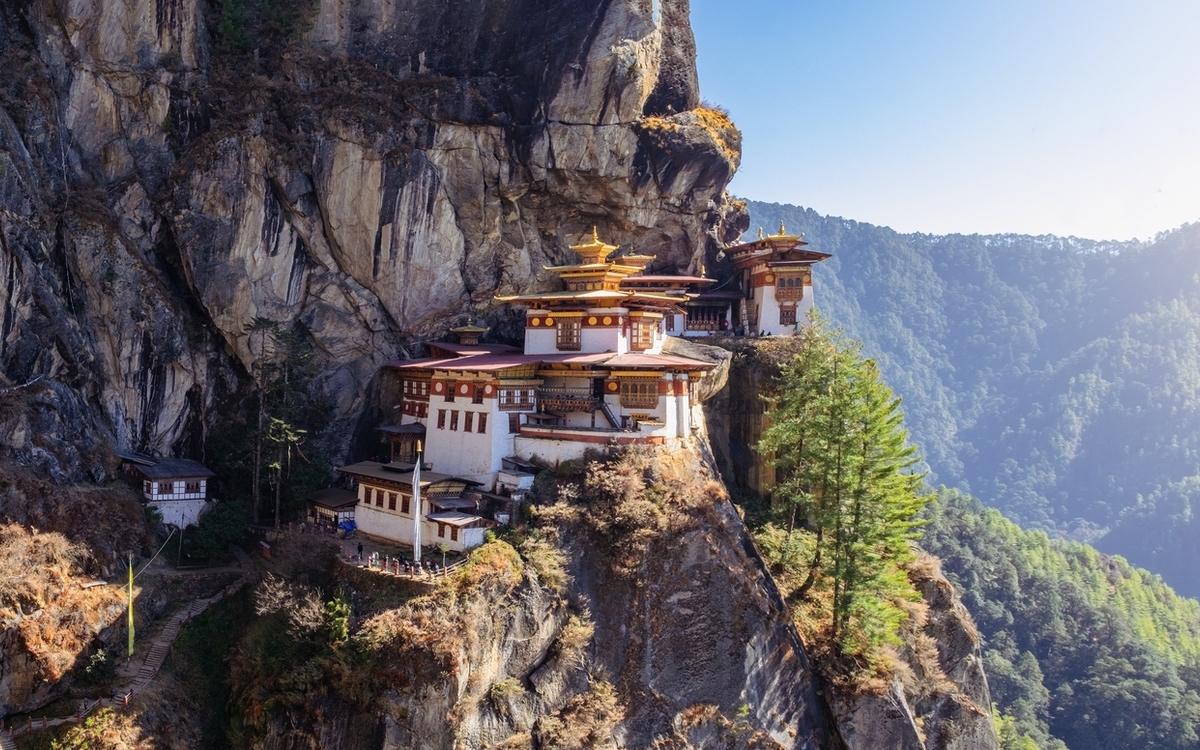 Wie ein Wunder klebt das Taktsang-Kloster an der senkrechten Felswand, 900 Meter über dem Tal von Paro – eines der heiligsten und spektakulärsten Ziele Bhutans. Der Legende nach flog Guru Rinpoche im 8. Jahrhundert auf dem Rücken einer Tigerin zu dieser Stelle, um hier in einer Höhle zu meditieren und den Buddhismus im Land zu verbreiten. Der etwa zweistündige Aufstieg führt durch dichte Wälder, vorbei an flatternden Gebetsfahnen und stillen Andachtsplätzen. Zum Abschluss Ihrer Reise besuchen Sie später noch einen traditionellen Bauernhof, wo Sie sich mit den Besitzern über das Leben austauschen können. Übernachtung in Paro (2/2)
