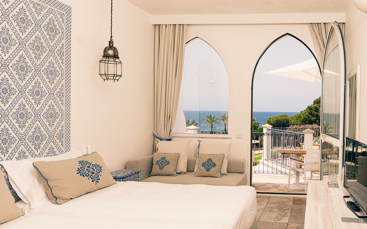 Alle Zimmer, Suiten und Villen sind hell und freundlich eingerichtet, mit typisch sardischen Architekturdetails akzentuiert und mit einem eigenen Balkon, einer Terrasse oder einem Garten ausgestattet. Sie übernachten in den komfortablen Deluxe Doppelzimmern. Auf Wunsch sind auch verschiedene Junior Suiten, Suiten und Villen gegen Aufpreis buchbar.