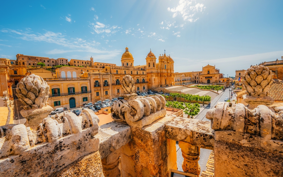 Zunächst besuchen Sie Noto, die als Hauptstadt des sizilianischen Barocks gilt und zum UNESCO-Welterbe zählt. Die nach einem verheerenden Erdbeben im 17. Jahrhundert vollständig neu errichtete Stadt begeistert mit ihrer harmonischen Architektur aus warm schimmerndem Tuffstein. Entlang der eleganten Corso Vittorio Emanuele reihen sich prachtvolle Paläste, Kirchen und Adelshäuser aneinander. Besonders die imposante Kathedrale von Noto, die majestätisch über der Stadt thront, verleiht dem Stadtbild eine einzigartige Eleganz. Anschließend geht es weiter nach Syrakus, einer der geschichtsträchtigsten Städte des Mittelmeerraums. Die einst mächtige griechische Metropole beeindruckt mit einem außergewöhnlichen kulturellen Erbe aus mehreren Jahrtausenden. Auf der Insel Ortigia, dem historischen Zentrum von Syrakus, laden verwinkelte Gassen, lebendige Plätze und die prächtige Kathedrale auf antiken Fundamenten zum Entdecken ein.