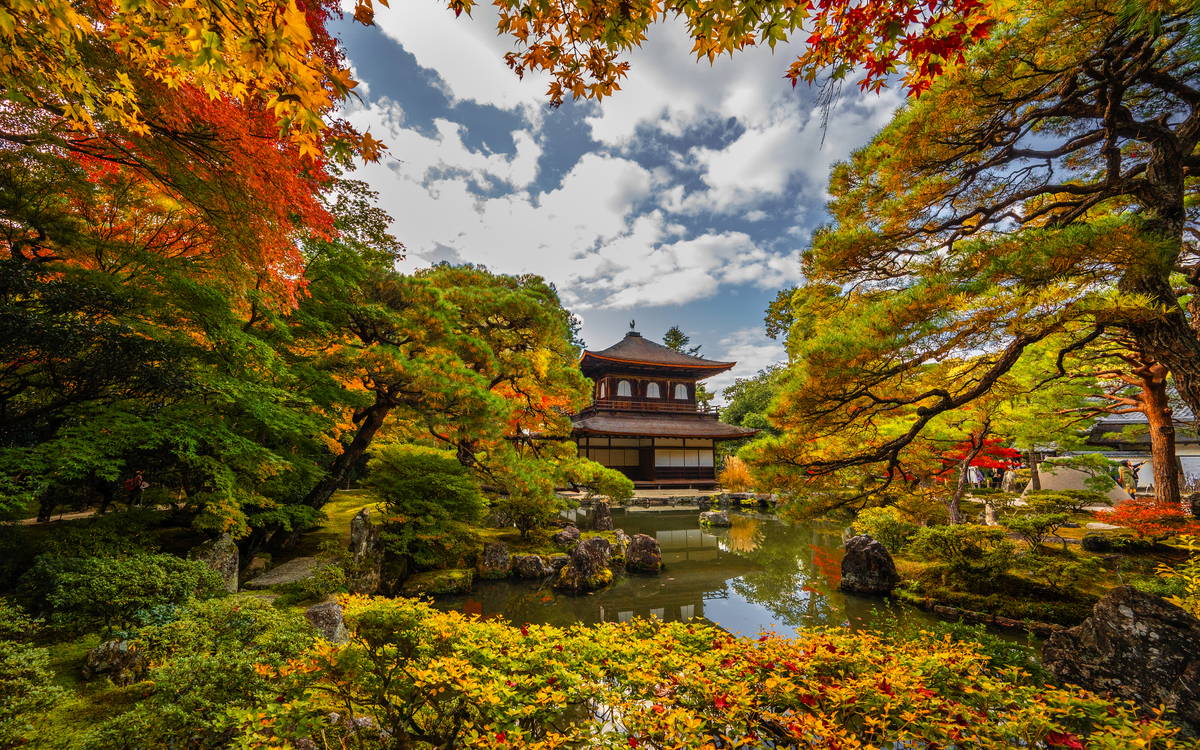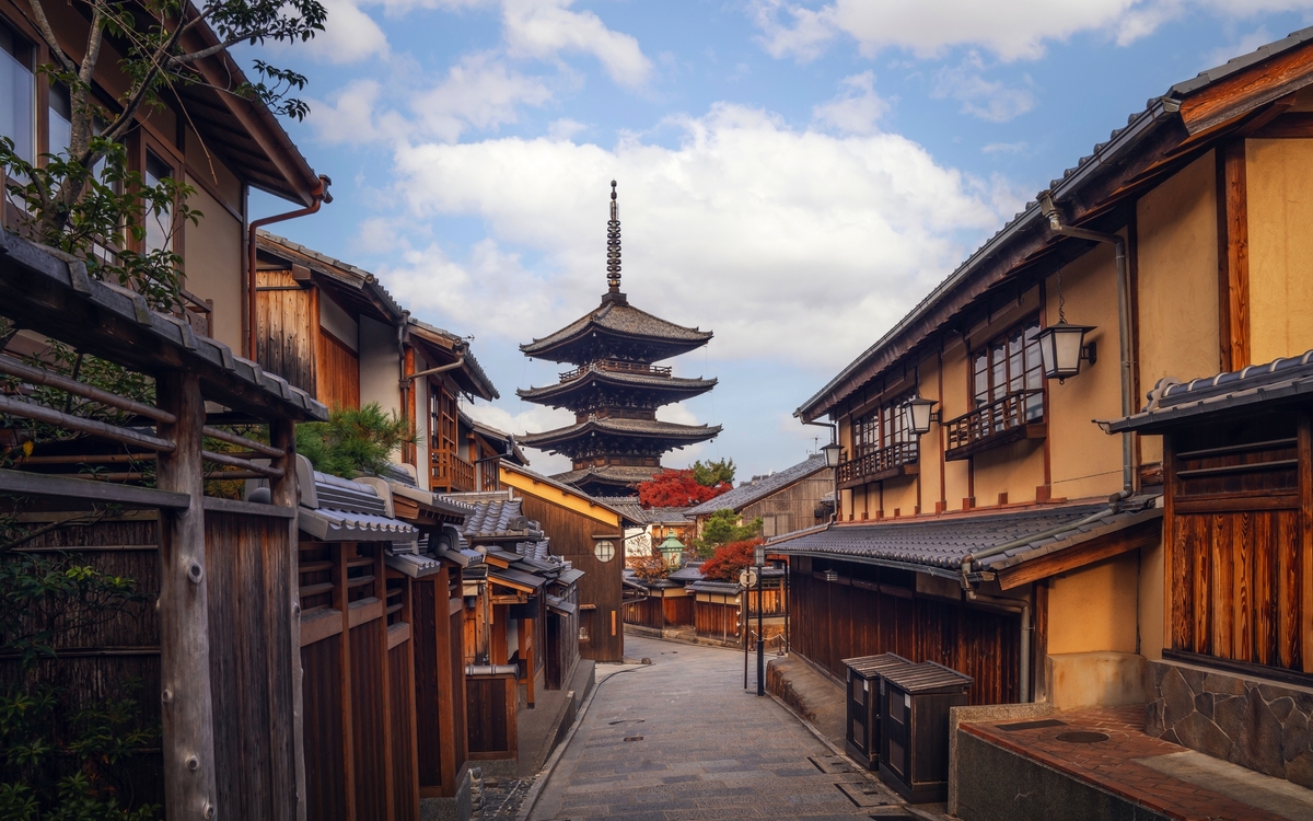 Ihre Reise führt Sie mit dem Shinkansen nach Kyoto, wo Sie an zwei eindrucksvollen Erlebnistagen tief in die kulturelle und spirituelle Welt Japans eintauchen. Ein Höhepunkt ist der Besuch des Fushimi Inari Taisha, der mit seinen tausenden leuchtend roten Torii-Toren begeistert, die sich in langen Reihen den bewaldeten Hügel hinaufziehen. Beim Spaziergang durch diese eindrucksvolle Kulisse, die im Herbst von farbenprächtigem Laub umrahmt wird, entsteht eine ganz besondere, fast mystische Atmosphäre. Ebenso faszinierend präsentiert sich der Kinkaku-ji, der berühmte Goldene Pavillon, dessen mit Blattgold überzogene Fassade sich malerisch im umgebenden Teich spiegelt, besonders im warmen Licht der Herbstsonne ein nahezu perfektes Bild japanischer Ästhetik. Mit dem Nijō-jō entdecken Sie eine eindrucksvolle Schlossanlage der Tokugawa-Zeit, die mit kunstvoll verzierten Räumen, filigranen Wandmalereien und den berühmten „Nachtigallenböden“, die bei jedem Schritt leise Geräusche erzeugen, einen lebendigen Einblick in die Welt der Shogune bietet. Der Ginkaku-ji, auch als Silberner Pavillon bekannt, besticht hingegen durch seine schlichte Eleganz und seine harmonisch gestalteten Gärten, die mit Moosflächen, Sandarrangements und herbstlich gefärbten Bäumen eine ruhige, fast meditative Stimmung schaffen. Auch der Besuch rund um Nishida Kitarō eröffnet Ihnen eine weitere, tiefgründige Facette Kyotos: In Verbindung mit Philosophie, Natur und Stille erleben Sie hier einen Ort, der zum Nachdenken und Verweilen einlädt, gerade im Herbst, wenn die umliegenden Wege in warme Farben getaucht sind. Abgerundet wird Ihr Aufenthalt durch besondere kulturelle und kulinarische Erlebnisse: In einem Sake-Museum erfahren Sie Wissenswertes über die traditionsreiche Herstellung des japanischen Reisweins und verkosten ausgewählte Sorten. Bei einem Okonomiyaki-Mittagessen erleben Sie die Zubereitung dieser herzhaften Spezialität hautnah, während ein Koch die einzelnen Schritte anschaulich erklärt – das Gericht gilt als typische Delikatesse der Kansai-Region rund um Kyoto und begeistert mit seiner Vielfalt an Zutaten und seinem unverwechselbaren Geschmack. Einen besonders stimmungsvollen Abschluss bildet die traditionelle Teezeremonie, bei der Sie in ruhiger Atmosphäre in die feinen Rituale und die Ästhetik dieser jahrhundertealten Kunst eingeführt werden.