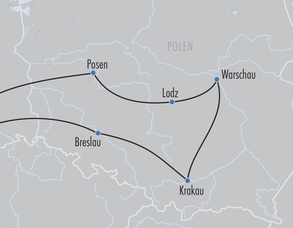 Diese Reise führt Sie mitten hinein in das Herz Polens, ein Land voller Geschichte, Kultur und überraschender Kontraste. Lernen Sie mit uns die schönsten Metropolen Polens kennen, die ihre bewegte Geschichte selbstbewusst präsentieren, gleichzeitig mit modernem Flair überraschen und Sie begeistern werden! Begleitet von Stadtspaziergängen und besonderen Einblicken entdecken Sie die Gesichter eines Landes, das Altes bewahrt und Neues willkommen heißt.