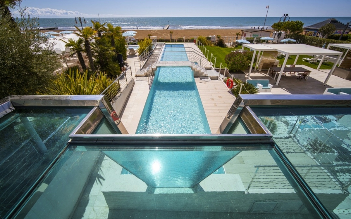 Willkommen im Hotel Le Soleil (oder vergleichbar) an der wunderschönen Adria in Lido di Jesolo! Das vollständig renovierte Haus zählt bereits seit 1968 zu den renommiertesten Hotels an der Adria und ist ein Liebling bei Stammgästen. Das Hotel liegt in Bestlage in der ersten Strandreihe. Nur wenige Schritte trennen das Hotel vom lebendigen Zentrum mit seinen eleganten Boutiquen, gemütlichen Cafés und der Flaniermeile, die zu den längsten Europas zählt. Dank der hervorragenden Lage ist das Hotel ein idealer Ausgangspunkt für Ausflüge in die venezianische Lagune: Die Anlegestelle Punta Sabbioni erreichen Sie in kurzer Zeit, von wo Sie mit den Schiff zu den zahlreichen Inseln der Lagune kommen. Die 174 Zimmer im Hotel Le Soleil überzeugen durch ihre stilvolle Einrichtung, warme Farben und ein harmonisches Design, das mediterrane Leichtigkeit mit modernem Komfort verbindet. Hochwertige Materialien, geschmackvolle Details und eine angenehme Raumaufteilung schaffen eine behagliche Atmosphäre, ideal, um sich nach einem erlebnisreichen Tag zu entspannen. Das hauseigene Restaurant bietet eine gepflegte Atmosphäre und serviert eine abwechslungsreiche Küche mit mediterranen und internationalen Einflüssen – begleitet von einem zuvorkommenden Service. Ergänzt wird das kulinarische Angebot durch eine elegante Bar, die tagsüber erfrischende Getränke und kleine Snacks bereithält und sich abends in einen stimmungsvollen Treffpunkt für entspannte Ausklänge verwandelt. Im Panorama-Spa können Sie auf Wunsch Ruhe und Erholung in stilvollem Ambiente genießen. Hier stehen eine Sauna, ein Dampfbad, Erlebnisduschen sowie ein komfortabler Ruheraum mit Ausblick auf die Adria zur Verfügung. Ergänzt wird das Angebot durch wohltuende Anwendungen wie Massagen und Schönheitsbehandlungen, die auf Wunsch hinzugebucht werden können. Weitere Informationen finden Sie auf der Hotelwebseite.