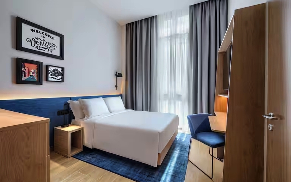 Im charmanten Stadtviertel Dorsoduro gelegen, bietet das Hotel Belle Arti (oder vergleichbar) eine stilvolle Unterkunft in ruhiger, aber zentraler Lage. Die klassisch-venezianische Gestaltung, ein gepflegter Innenhof und komfortable Zimmer machen das Haus zur hervorragenden Basis für Ihre Erkundungen in der Lagunenstadt. Weitere Informationen finden Sie auf der Hotelwebseite. Im Oktober übernachten Sie im modernen Hampton by Hilton Venezia Isola Nuova (oder vergleichbar) auf der Isola Tronchetto. Dank der nahen Vaporetto-Haltestelle erreichen SIe direkt die wichtigsten Sehenswürdigkeiten Venedigs. Die Rialto-Brücke und der Markusplatz sind nur drei Kilometer entfernt. Weitere Informationen finden Sie auf der Hotelwebseite.