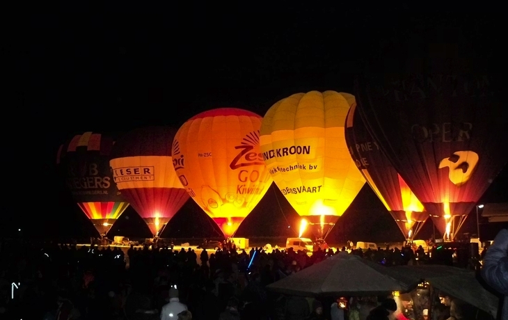 Die Anreise nach Inzell führt Sie durch die winterliche Landschaft des Chiemgaus. Schon unterwegs steigt die Vorfreude, denn aus vielen Richtungen machen sich Besucher auf den Weg zum beliebten Ballonglühen. Nach Ihrer Ankunft am Veranstaltungsgelände erwartet Sie eine gemütliche Atmosphäre. Zahlreiche Verpflegungsstände laden zum Bummeln und Genießen ein: Der Duft von Baumstriezeln, gebrannten Mandeln und frisch gegrillter Bratwurst liegt in der kalten Abendluft. Mit Ihrem Gutschein können Sie sich einen heißen Glühwein oder Punsch holen – perfekt, um sich an diesem winterlichen Abend aufzuwärmen. Währenddessen sorgt Livemusik für eine stimmungsvolle Unterhaltung und verkürzt die Wartezeit bis zum Höhepunkt der Veranstaltung. Sobald es dunkel wird, beginnt das spektakuläre Ballonglühen. Die großen Heißluftballons werden im Takt der Musik zum Leuchten gebracht und bilden eine beeindruckende Choreografie aus Farben und Licht. Immer wieder flammen die Brenner auf und tauchen die Ballonhüllen in ein warmes, faszinierendes Glühen – ein besonderes Schauspiel vor der nächtlichen Kulisse der Alpen. Nach diesem eindrucksvollen Erlebnis treten Sie schließlich die Heimreise an – mit vielen schönen Eindrücken und Erinnerungen an einen stimmungsvollen Winterabend in Inzell.