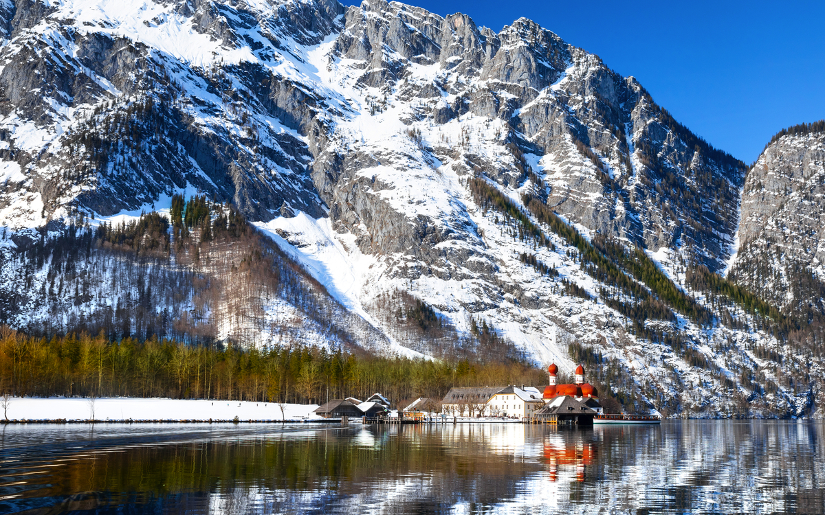 Um 16:00 Uhr legen die festlich geschmückten Sonderboote zur stimmungsvollen Überfahrt über den winterlichen Königssee ab. In der hereinbrechenden Dämmerung gleiten Sie über das stille, smaragdgrüne Wasser, während sich die verschneiten Gipfel eindrucksvoll im See spiegeln. Eine halbe Stunde später erreichen Sie die malerische Halbinsel St. Bartholomä. Anschließend erleben Sie in besonderer Atmosphäre die Lesung der „Heiligen Nacht“ von Ludwig Thoma. Die eindrucksvollen Worte und die einzigartige Kulisse der Wallfahrtskirche schaffen eine berührende, besinnliche Einstimmung auf das Weihnachtsfest. Abends erwartet Sie ein festliches 4-Gänge-Menü inklusive Getränke. In gemütlichem Ambiente genießen Sie kulinarische Köstlichkeiten und echte alpenländische Gastfreundschaft – ein Abend für alle Sinne. Wenn um 20:00 Uhr Fackeln den Weg hinunter zum Ufer erleuchten, entsteht eine fast märchenhafte Stimmung. Dann treten Sie die Rückfahrt mit den Sonderbooten an. Gegen 21:00 Uhr erreichen Sie die Seelände – erfüllt von festlichen Klängen, winterlicher Romantik und unvergesslichen Eindrücken.